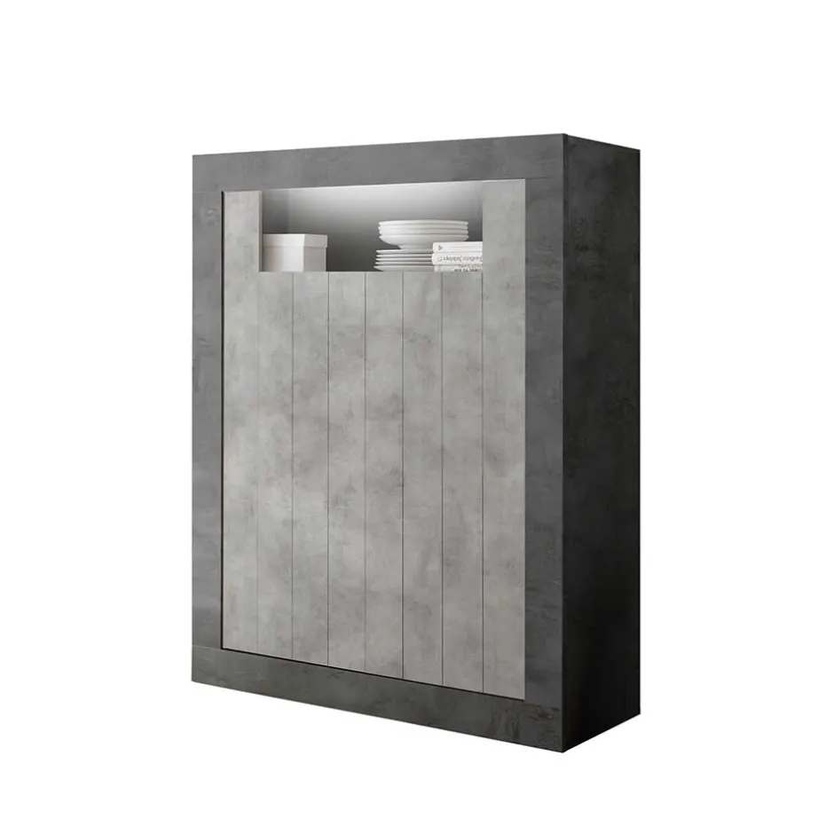 - Vielseitiges Highboard in Dunkel- und Betongrau