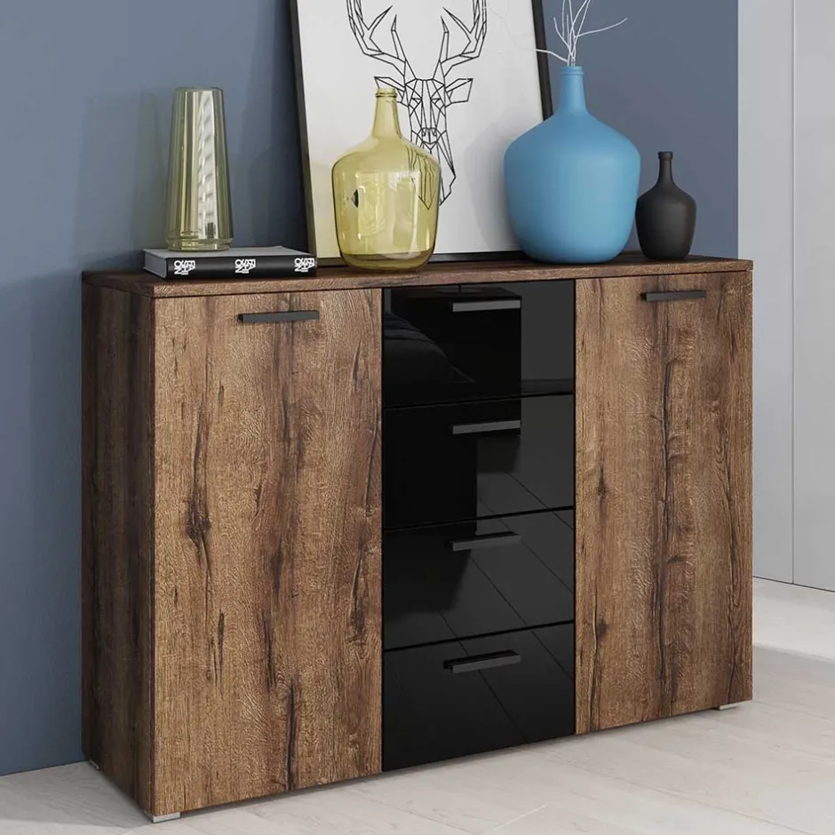 - Vielseitiges Sideboard in Wildeiche dunkel und Schwarz