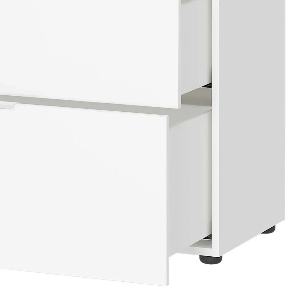 Mit ihrem modernen Design setzt die Kommode „Rufu“ ein stilvolles Statement in Ihrem Wohnraum. Modernes Design zeichnet sich durch schlichte Eleganz, klare Linien und minimalistische Formen aus. Die weiße melaminbeschichtete Oberfläche verleiht der Kommode ein edles Aussehen und fügt sich harmonisch in verschiedene Einrichtungsstile ein. Ein Möbelstück, das durch zeitlose Schönheit und praktische Funktionalität überzeugt.