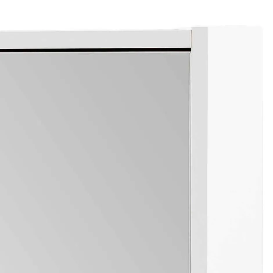Sie können zwischen Modellen mit einer Breite von 65 cm, 75 cm oder 94 cm wählen. Alle Varianten verfügen über eine großzügige Spiegelfläche, die in drei Türen unterteilt ist. Die Türen lassen sich durch leichten Druck nach innen öffnen, wodurch Griffe überflüssig werden und ein modernes, griffloses Design entsteht.