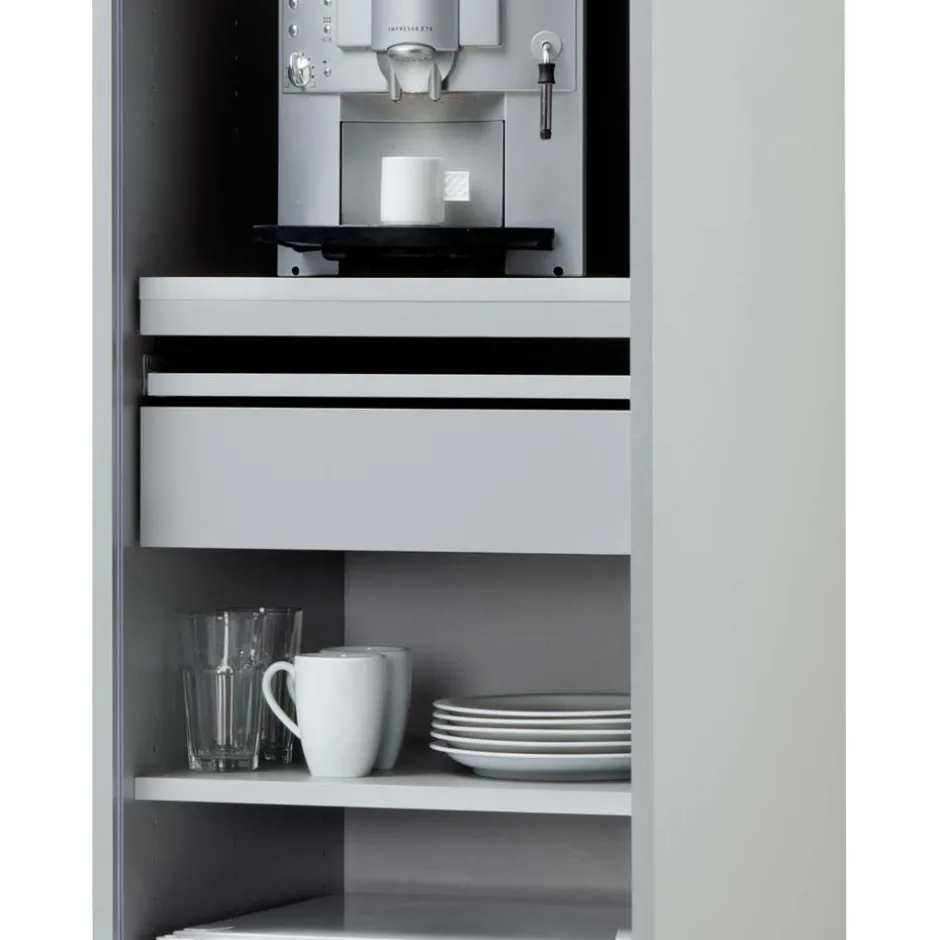 Mit seinen Maßen von 50 cm Breite, 202 cm Höhe und 60 cm Tiefe bietet der Schrank „Asta“ nicht nur ausreichend Platz für deine Kaffeemaschine, sondern auch für all das Zubehör, das du für deine tägliche Kaffeezubereitung benötigst. Der ausziehbare Boden, mit einer großzügigen Fläche von 45 cm Breite und 51 cm Tiefe, ist perfekt dafür geeignet, deine Kaffeemaschine sicher und platzsparend unterzubringen.