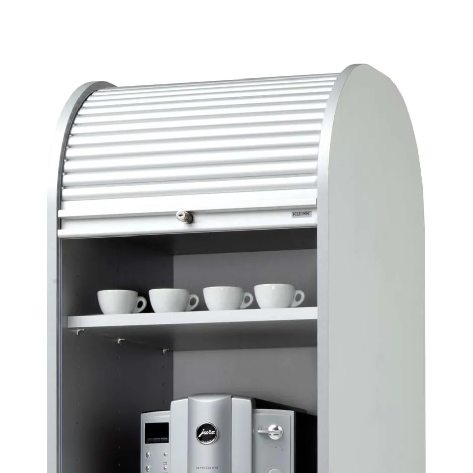 Durch die kompakte Größe und das vielseitige Design ist der Schrank „Asta“ die ideale Wahl sowohl für private Haushalte als auch für den professionellen Einsatz in der Gastronomie. Egal ob in der heimischen Küche, im Büro oder in einem Café – der Rollladen Schrank passt überall hin und schafft Ordnung und Struktur in deinen Alltag.