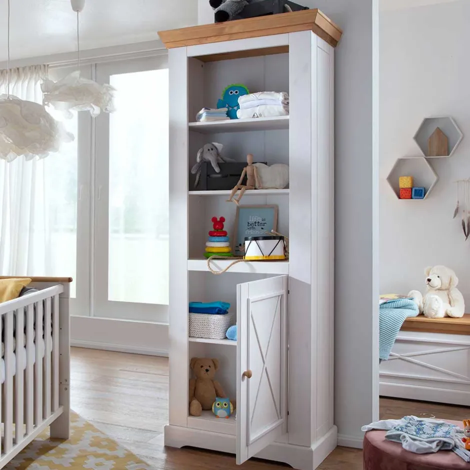 Mit Außenmaßen von 79 cm in der Breite, 200 cm in der Höhe und 42 cm in der Tiefe bietet das „Envicron“ Standregal ausreichend Stauraum, um für Ordnung im Kinderzimmer zu sorgen.