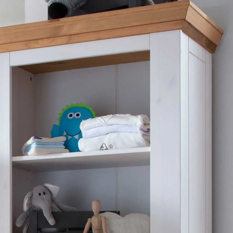 Hergestellt aus massivem Kiefernholz, verspricht dieses Regal nicht nur Langlebigkeit, sondern auch einen umweltfreundlichen Charakter. Kiefernholz ist bekannt für seine Robustheit und Beständigkeit. Es ist nicht nur hart und widerstandsfähig, sondern verleiht auch jedem Möbelstück eine individuelle Maserung, die es einzigartig macht.