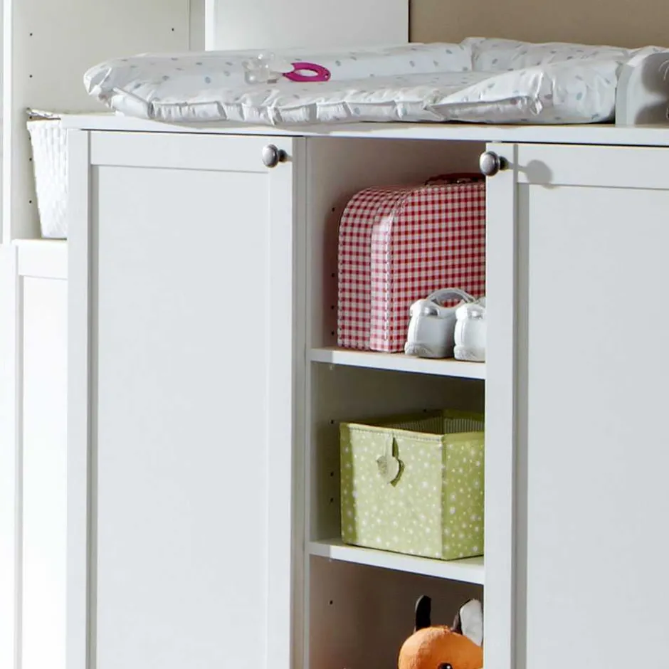 Weiße, folierte Oberflächen sorgen nicht nur für die moderne und frische Optik, sondern machen das Möbelstück besonders pflegeleicht. Kleine Missgeschicke lassen sich mühelos abwischen – ideal für den Familienalltag. Dank der hochwertigen Folierung zeigt sich die Oberfläche widerstandsfähig gegen Feuchtigkeit und überzeugt mit hoher Kratzfestigkeit. Die rund gearbeiteten Korpuskanten ergänzen das sichere und kindgerechte Design zusätzlich.