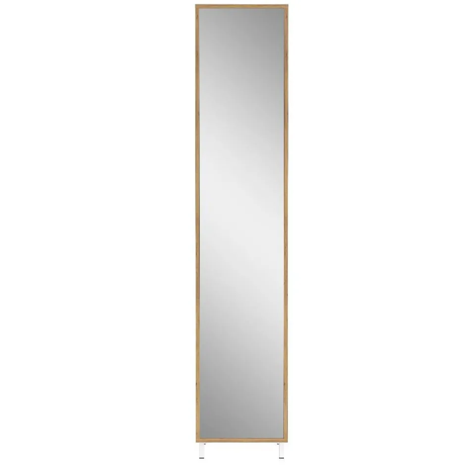 - Aus Spanplatte und Spiegelglas gefertigt, eichefarbiger Rahmen aus MDF