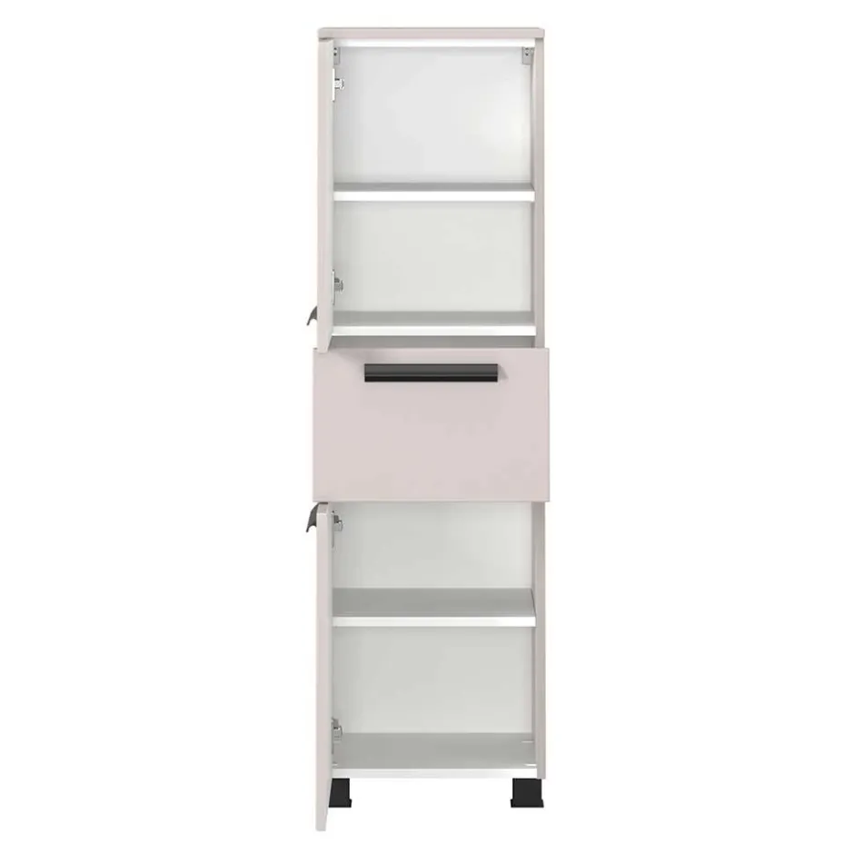 Mit zwei Türen, hinter denen sich jeweils ein verstellbarer Einlegeboden befindet, bietet der Midischrank „Adendras“ viel Platz für Ihre Badezimmerartikel. Die zusätzliche Schublade mit Soft-Close-Funktion sorgt für noch mehr Komfort und Ordnung.