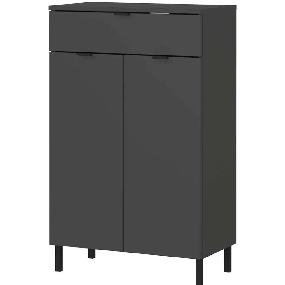 Das Badezimmer Vertiko „Quado“ begeistert mit seinem modernen Design in Dunkelgrau, das Ihrem Badezimmer eine zeitgemäße Ästhetik verleiht. Gefertigt aus robustem Holzwerkstoff und mit einer melaminbeschichteten Oberfläche ausgestattet, punktet dieses Möbelstück nicht nur mit Stil, sondern auch mit hoher Pflegeleichtigkeit. Die stoßfesten ABS-Kanten garantieren zudem eine lange Lebensdauer.