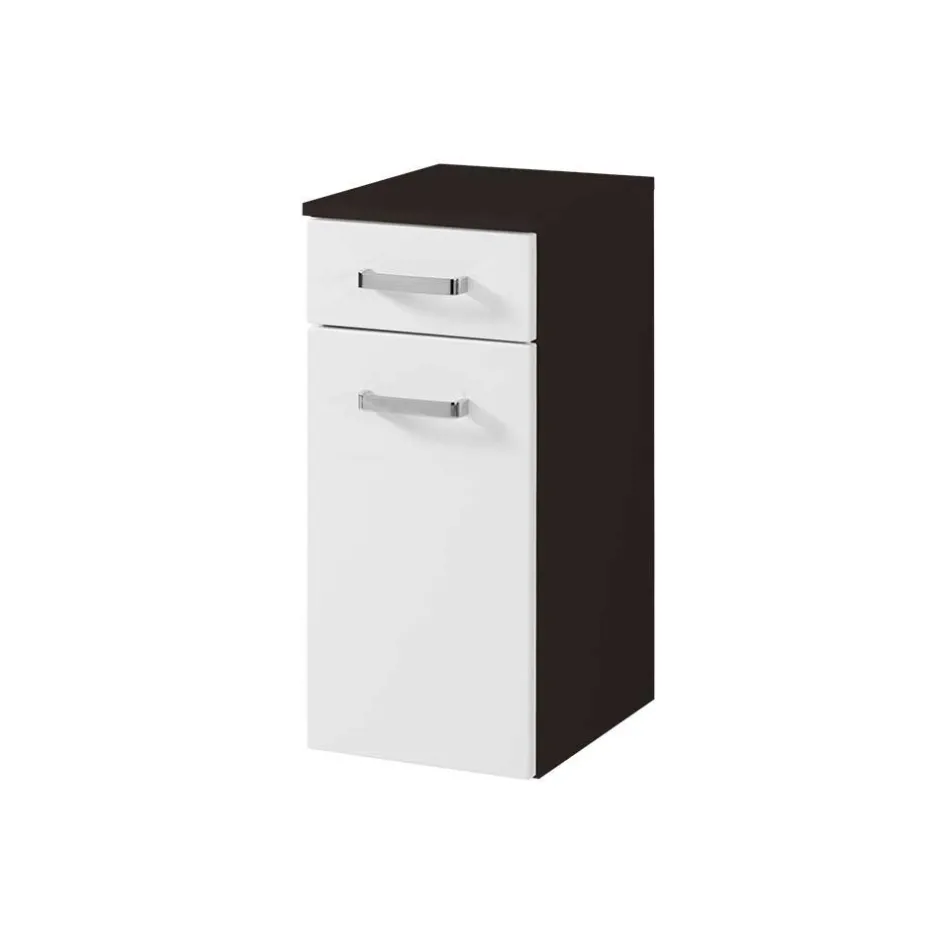Kompakte Maße von 30x79x35 cm machen diesen Schrank zum idealen Begleiter in Ihrem Bad. Hinter der Tür mit Einlegeboden und mit zusätzlicher Schublade mit Metall-Vollauszug und Softclose bietet er Platz für Handtücher, Kosmetik oder Alltagsutensilien. Zwei formschöne Metallgriffe unterstreichen den eleganten Look.