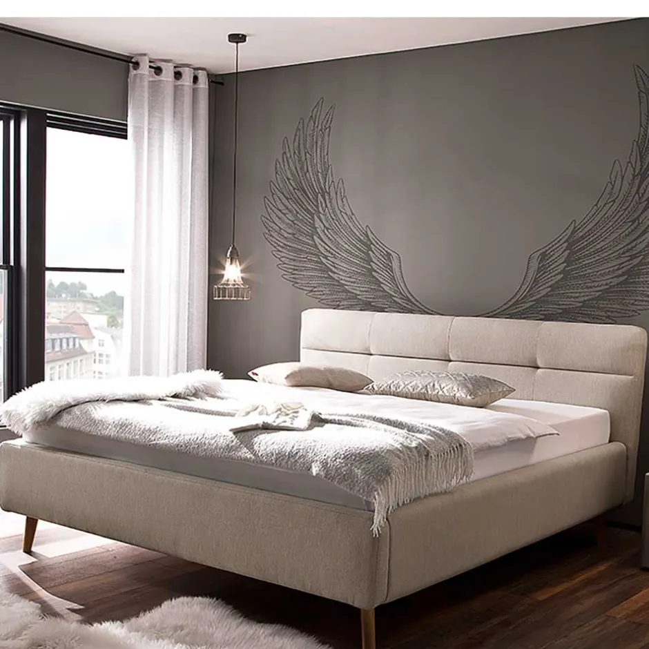 Das Kopfteil und die Umrandung des Bettes sind mit einem strukturierten Webstoff aus 100 % Polyester in stilvollem Beige bezogen. Dieser Bezug ist nicht nur modisch und im Trend, sondern auch äußerst pflegeleicht. Die neutrale Farbe ermöglicht es Ihnen, das Bett problemlos in Ihre bestehende Schlafzimmereinrichtung zu integrieren.