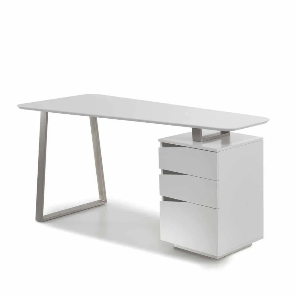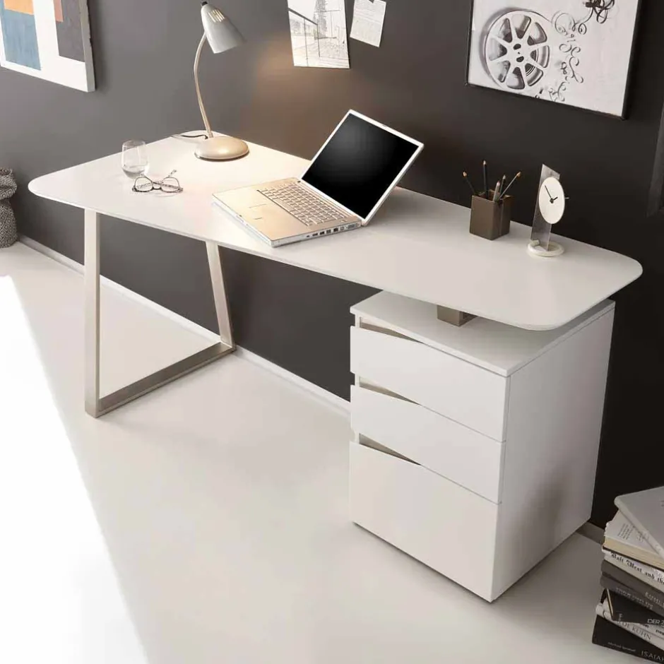 - Stylischer Schreibtisch in Weiß und Silberfarben