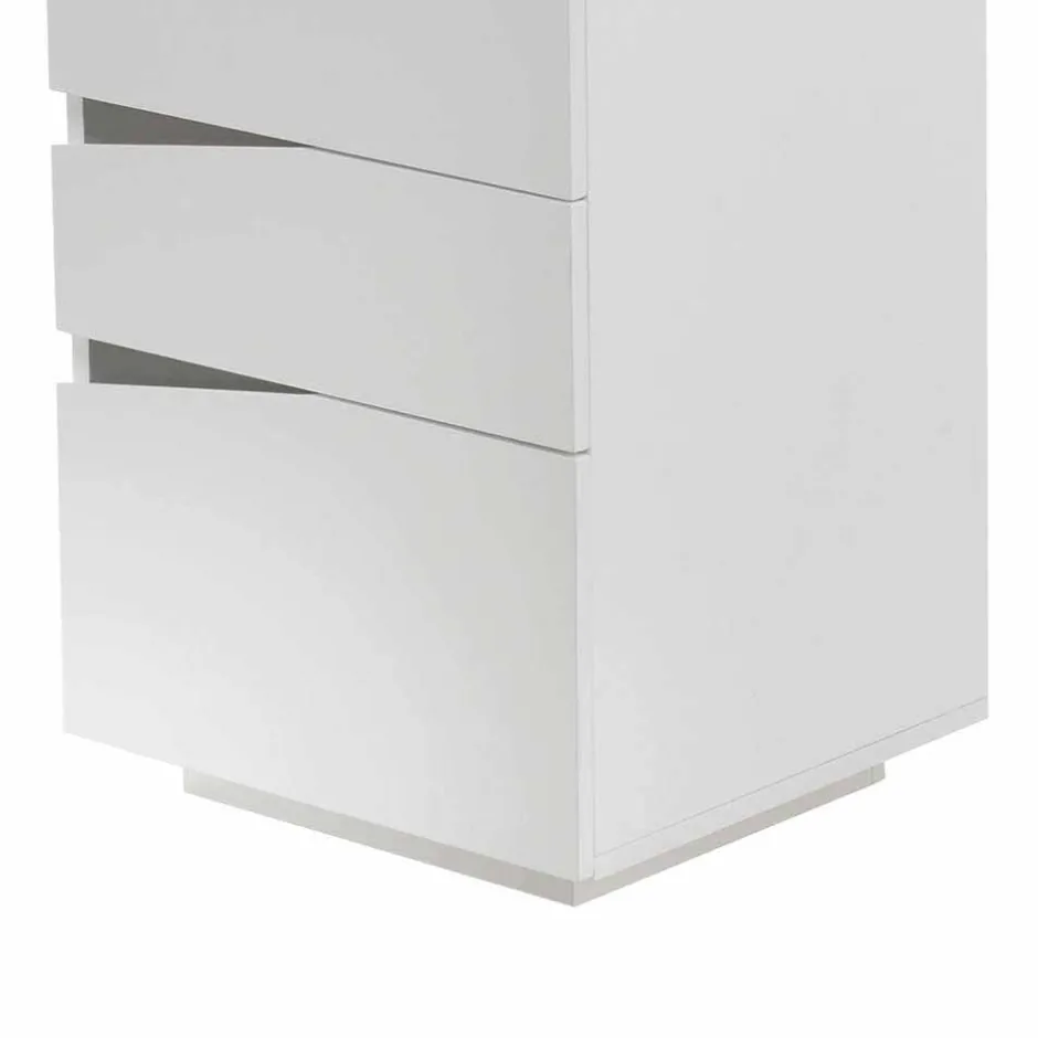 Der hochwertig verarbeitete Korpus und die Tischplatte aus MDF sorgt für ein solides, langlebiges Fundament. MDF – mitteldichte Faserplatte – vereint hohe Stabilität mit einer glatten, homogenen Oberfläche, die in jeder Hinsicht überzeugt. Die weiß matt lackierte Beschichtung fühlt sich angenehm weich an und verleiht dem Möbelstück eine edle, samtige Haptik. Kein grelles Glänzen, sondern pure Eleganz – pflegeleicht, widerstandsfähig und absolut zeitlos.