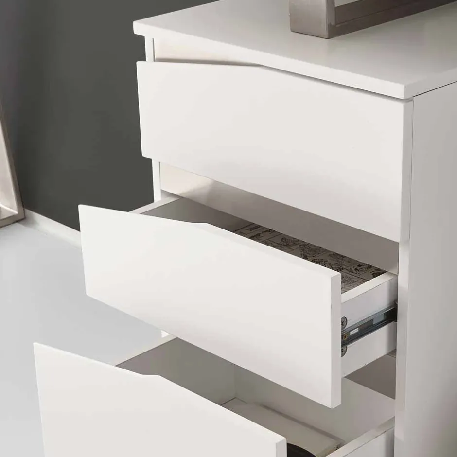 - Abgeschrägte Aussparung zum leichten Öffnen der Schubladen
