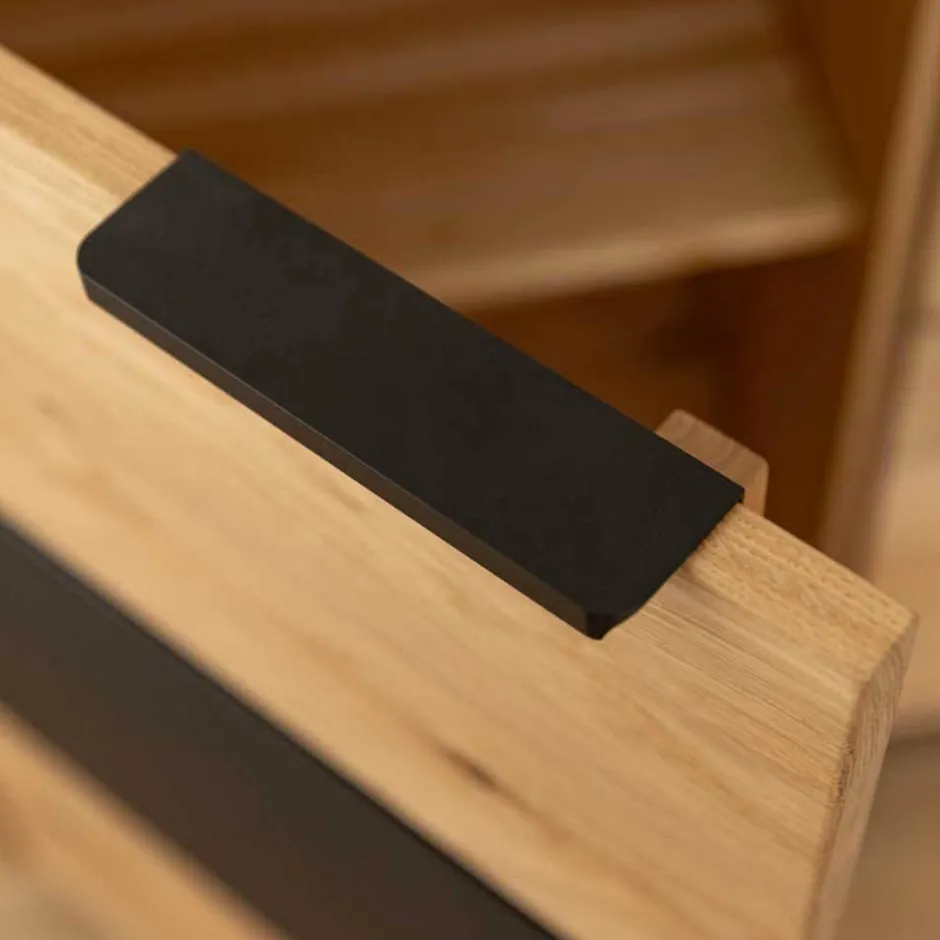 - Dezente, schwarze Kantengriffe aus Metall