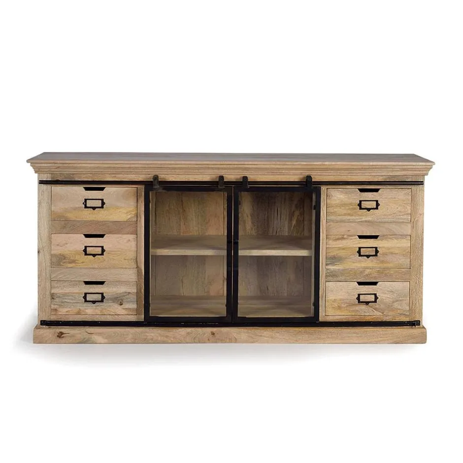 - Großzügiges Sideboard in Mangoholz Naturfarben und Schwarz