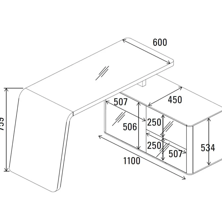 - Maße der Arbeitsplatte: BxT: 134×60 cm