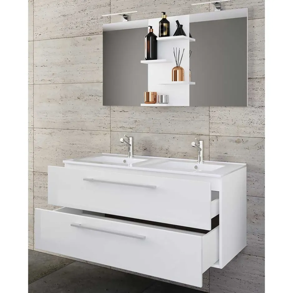 Das Badmöbel Set „Matsu“ besteht aus einem großzügigen Spiegel und einem praktischen Waschtisch mit Doppelwaschbecken. Dank der hochwertigen Verarbeitung und des durchdachten Designs entsteht eine harmonische Einheit, die sowohl optisch als auch funktional überzeugt.