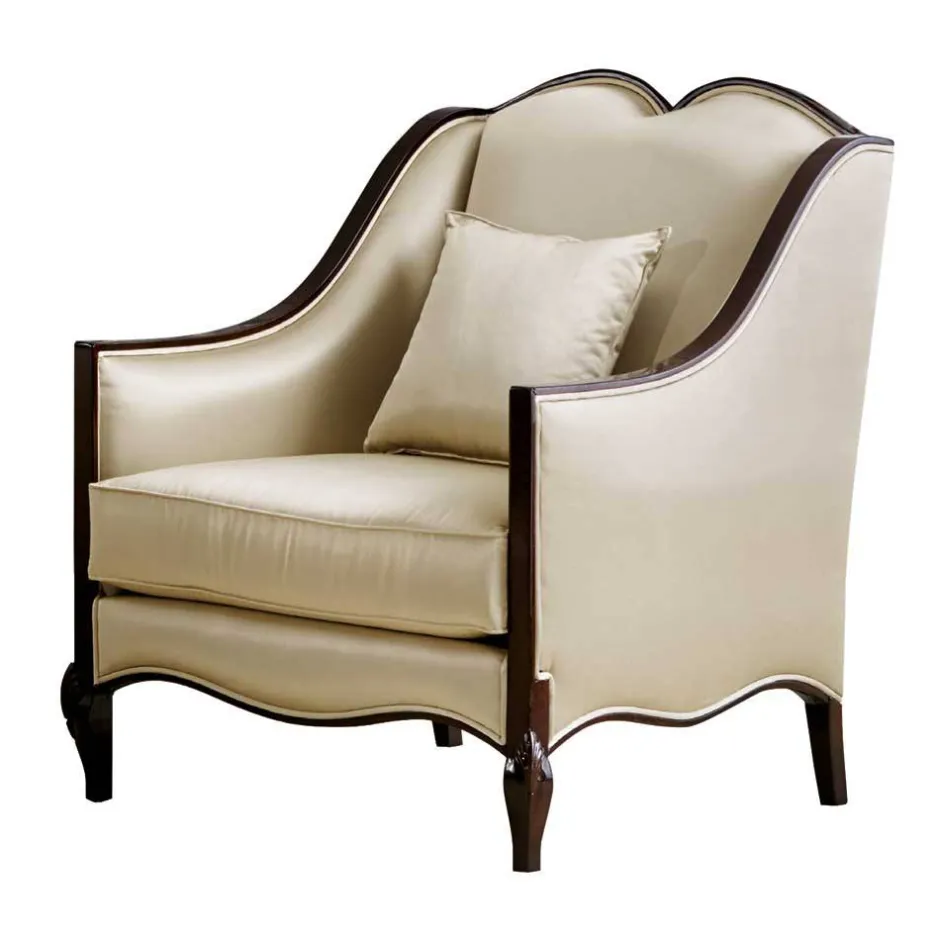 Die harmonisch geschwungene Linienführung, die elegant geformten Armlehnen und die sanft geschwungene Rückenlehne verleihen diesem Sessel eine royale Anmutung, die jedes Wohnzimmer auf ein neues Niveau hebt. Das edle Beige des hochwertigen Webstoffs unterstreicht den klassischen Stil und fügt sich mühelos in anspruchsvolle Einrichtungskonzepte ein – ob modern, traditionell oder luxuriös.