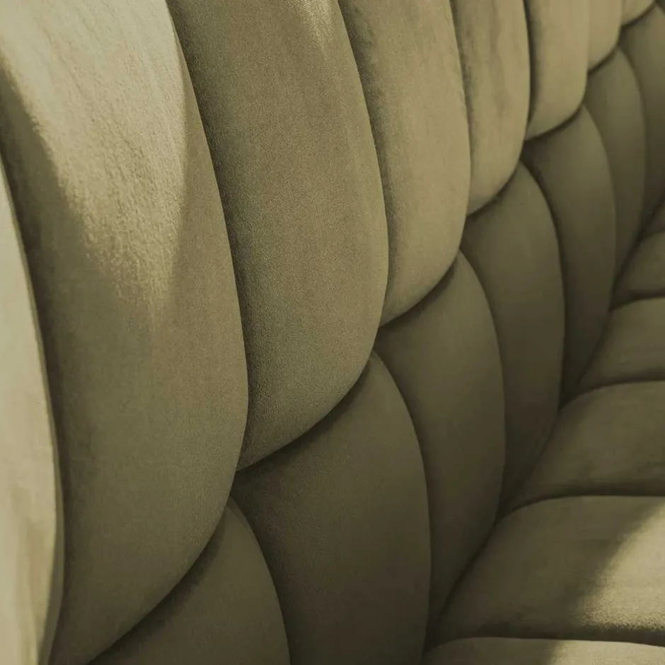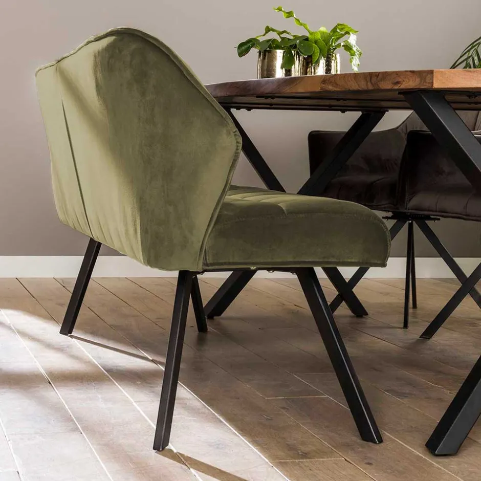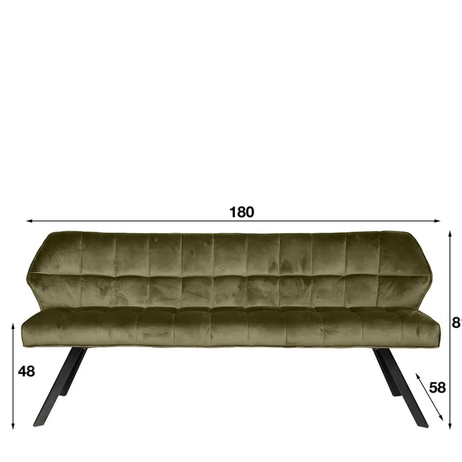 Der Samtbezug in Oliv-Grün verleiht der Bank einen Hauch von Eleganz und Gemütlichkeit. Das strapazierfähige Material besteht aus 100 % Polyester und ist besonders pflegeleicht. Damit ist die Esszimmerbank „Deway“ nicht nur ein optisches Highlight, sondern auch äußerst praktisch im Alltag.