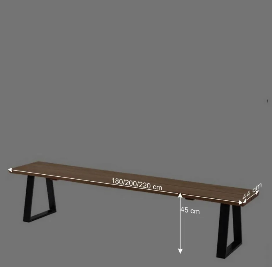 Die Sitzhöhe beträgt 45 cm, die Tiefe 44 cm und die Bank ist in drei Breiten (180 – 220 cm) für drei bis vier Personen wählbar.