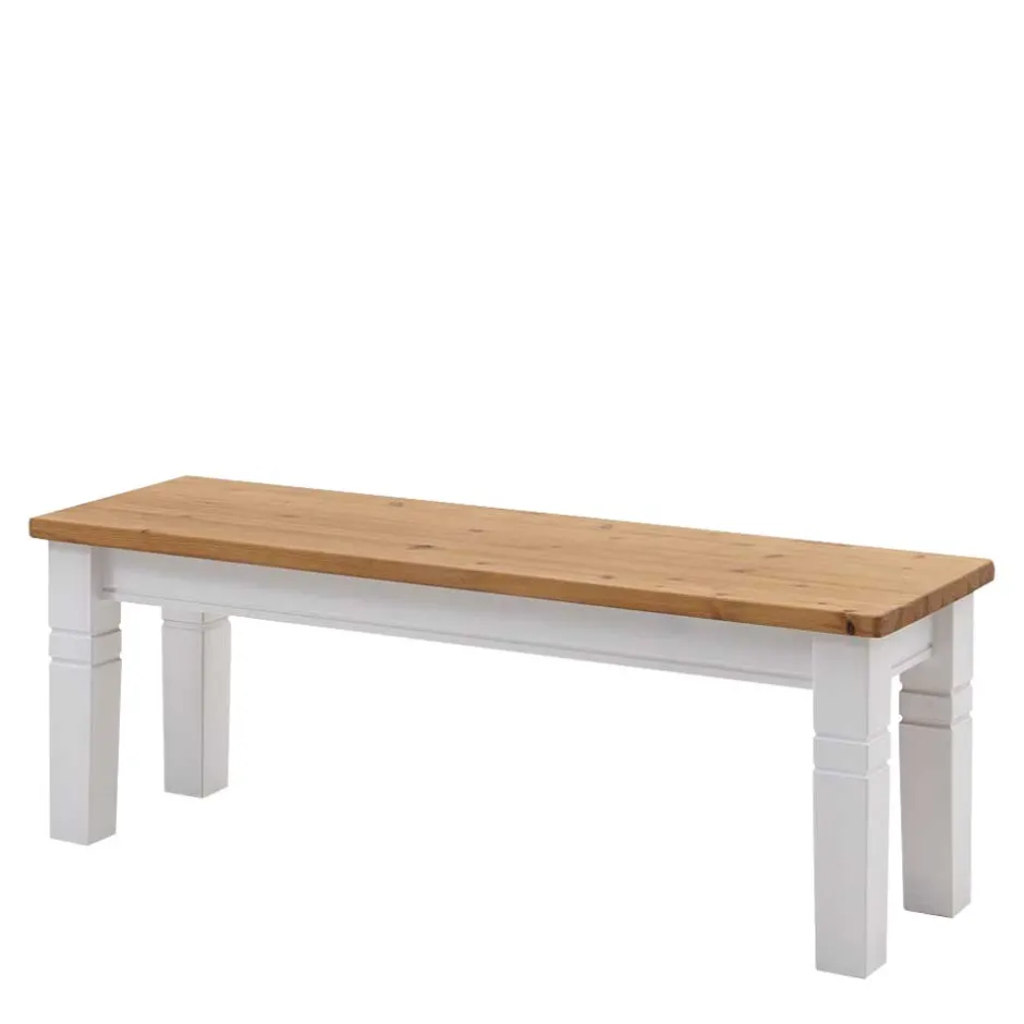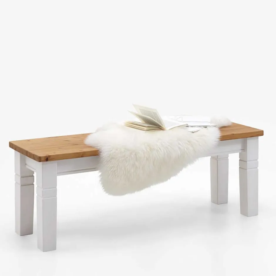 - Harmonische Landhaus Sitzbank in Weiß und Kiefer laugenfarbig