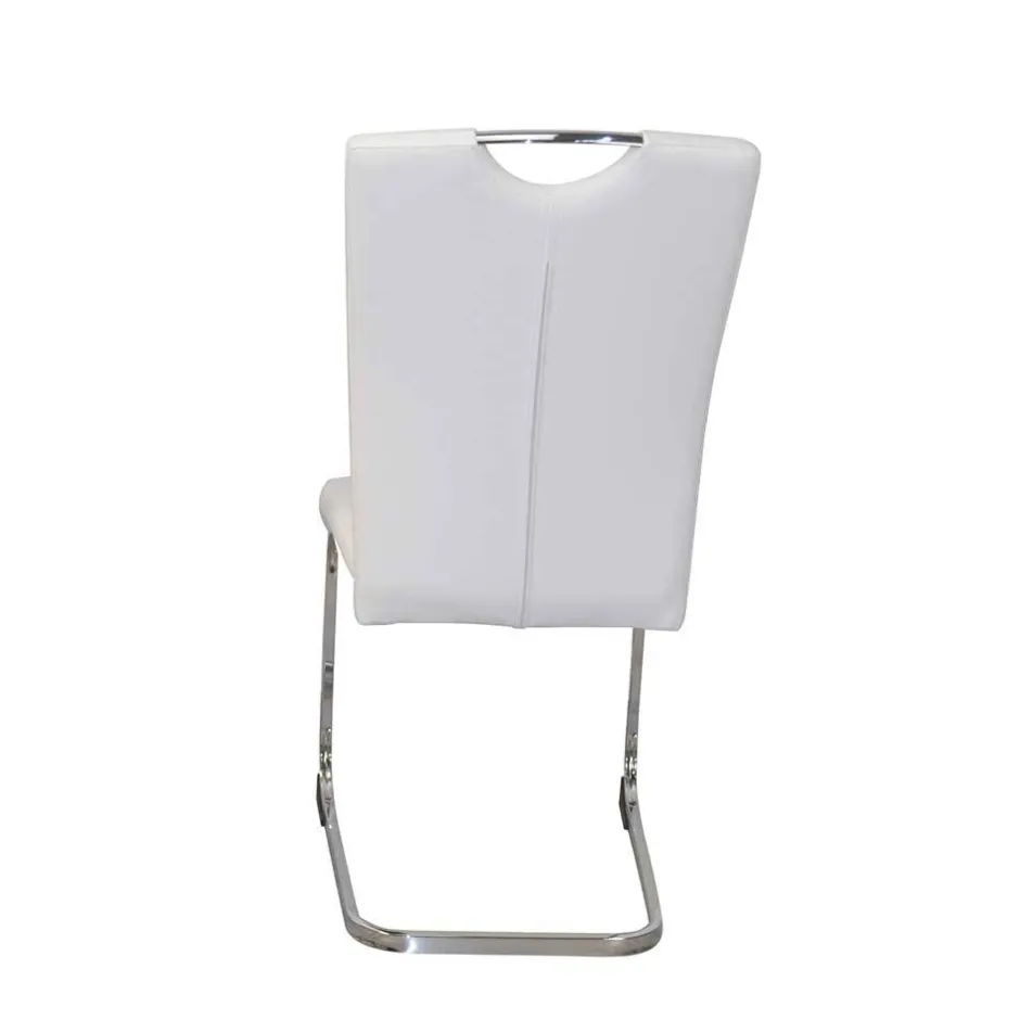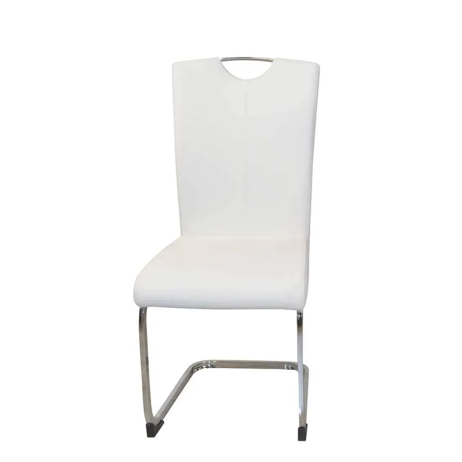 Die Stühle sind mit Kunstleder in strahlendem Weiß bezogen, gefertigt aus 100 % Polyurethan. Dieser moderne Werkstoff ist ein echtes Multitalent: Besonders pflegeleicht, widerstandsfähig gegenüber Feuchtigkeit und Abnutzung – und gleichzeitig angenehm weich auf der Haut. Das Kunstleder sieht echtem Leder zum Verwechseln ähnlich, ist dabei aber tierfreundlich und unkompliziert in der Reinigung. Die Gestelle aus Metall sorgen für die nötige Stabilität und Langlebigkeit – perfekt für den täglichen Gebrauch.
