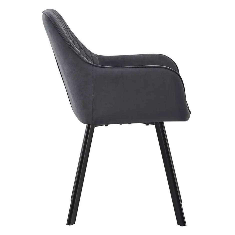Hochwertige Verarbeitung und stabile Konstruktion zeichnen die Sitzgruppe „Ziadovas“ aus – und das bis ins kleinste Maß. Jeder Stuhl ist bis zu 110 kg belastbar und überzeugt durch eine angenehme Polsterung mit ergonomischer Linienführung. Eine weich gepolsterte Sitzfläche, gesteppt im Rückenbereich, sorgt für entspannten Komfort. Leicht ausgestellte Armlehnen mit einer Höhe von 63 cm bieten zusätzliche Bequemlichkeit und stützen die Arme genau dort, wo es sich am besten anfühlt.
