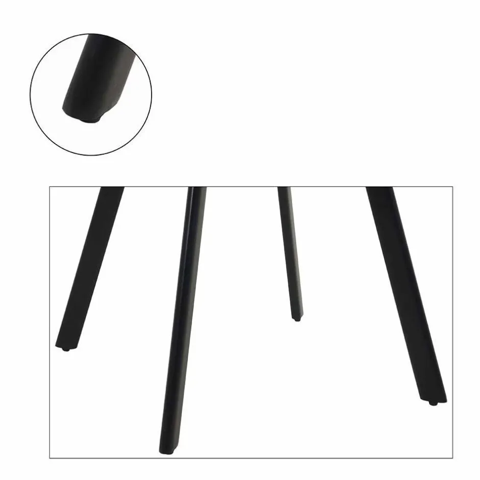 Solide Metallgestelle runden das Materialkonzept ab: Das Tischgestell ist in Weiß lackiert, während die Stuhlgestelle mit einer schwarzen Pulverbeschichtung versehen wurden. Die klassische Lackierung des Tischs bringt Eleganz und Schutz zugleich, während das Pulverbeschichtungsverfahren der Stühle durch seine Widerstandsfähigkeit gegen Stöße, Kratzer und Korrosion besticht – ideal für Möbel, die im Alltag mehr leisten sollen.