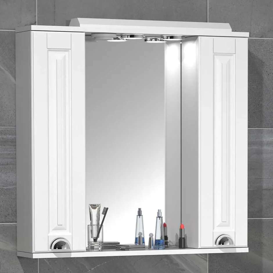 - Aus Holzwerkstoff und Spiegelglas (ESG Sicherheitsglas) gefertigt