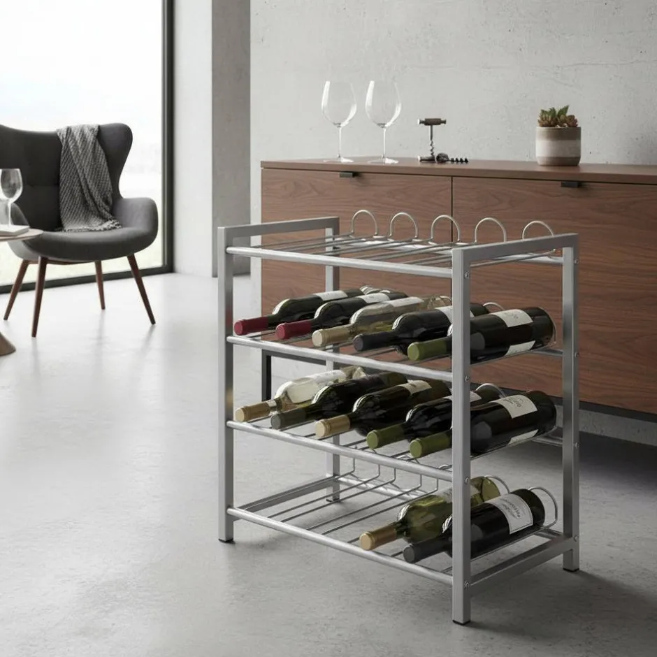 - Praktisches Flaschenregal in Alufarben