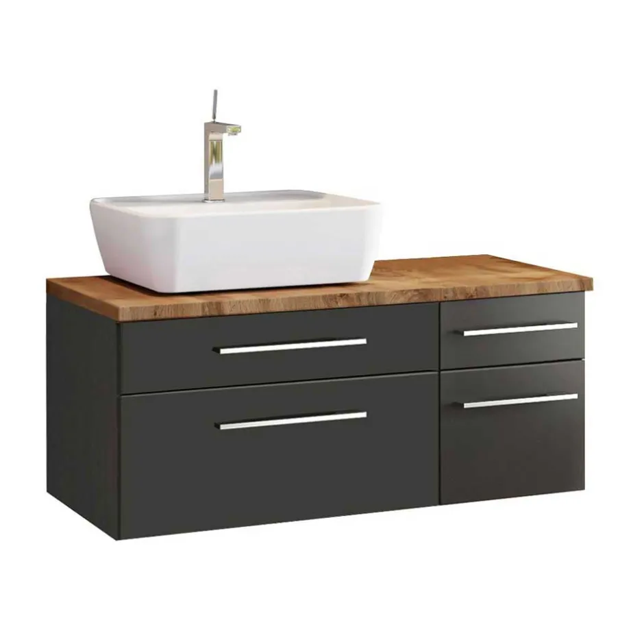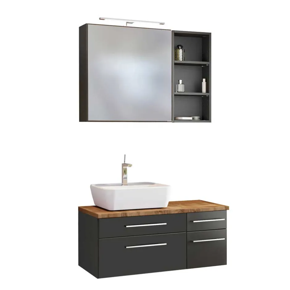 - Schickes Badmöbel Set in dunkel Grau und Wildeichefarben