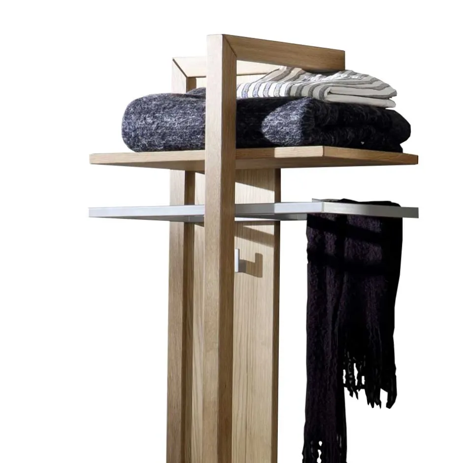 - Solide Hutablage aus Holz, darunter eine Metall Kleiderstange mit stabilisierendem Mittelsteg