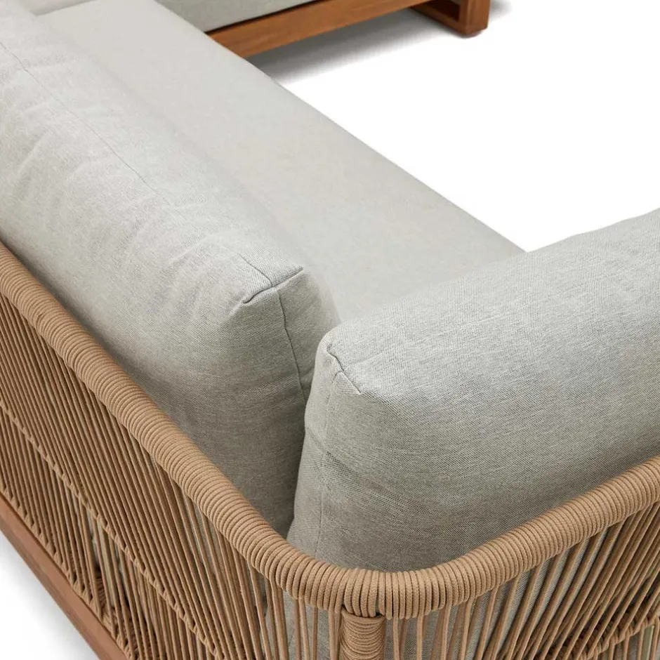 Gefertigt aus robustem Akazien-Massivholz, das nicht nur durch seine Stabilität, sondern auch durch seine wunderschöne natürliche Maserung überzeugt. Akazienholz ist bekannt für seine Härte und Widerstandsfähigkeit, wodurch Ihre Garten Sitzecke selbst bei intensiver Nutzung ihre Form und Schönheit bewahrt. Das Kordelgeflecht am Rücken verleiht dem Sofa nicht nur einen modernen Touch, sondern sorgt auch für eine hervorragende Belüftung und erhöht den Sitzkomfort.