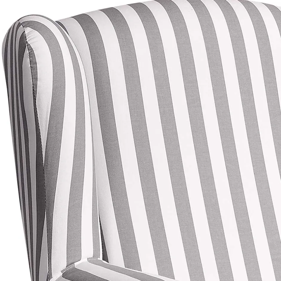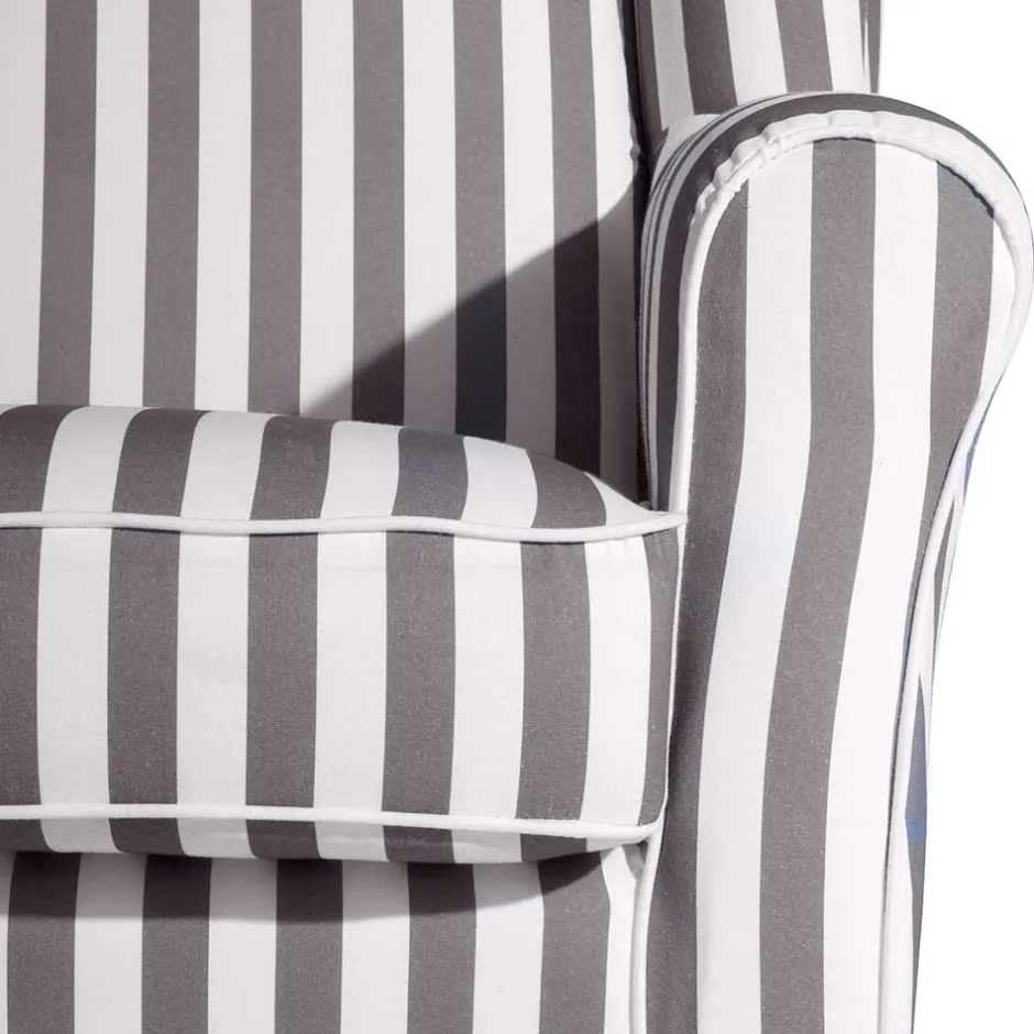 Der strapazierfähige Flachgewebe-Bezug mit seinem frischen Streifenmuster in Weiß und Hellgrau vereint optische Leichtigkeit mit einer angenehm weichen, textilen Oberfläche. Dank einer Martindale-Zahl von 24.000 Scheuertouren ist dieser Stoff nicht nur optisch ein Highlight, sondern auch für den Alltag bestens gewappnet – ideal für Familien, Gäste und alle, die viel und gerne leben. Die Mischung aus Baumwolle und Polyester sorgt dabei für ein angenehmes Hautgefühl und pflegeleichte Eigenschaften.
