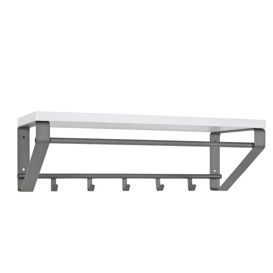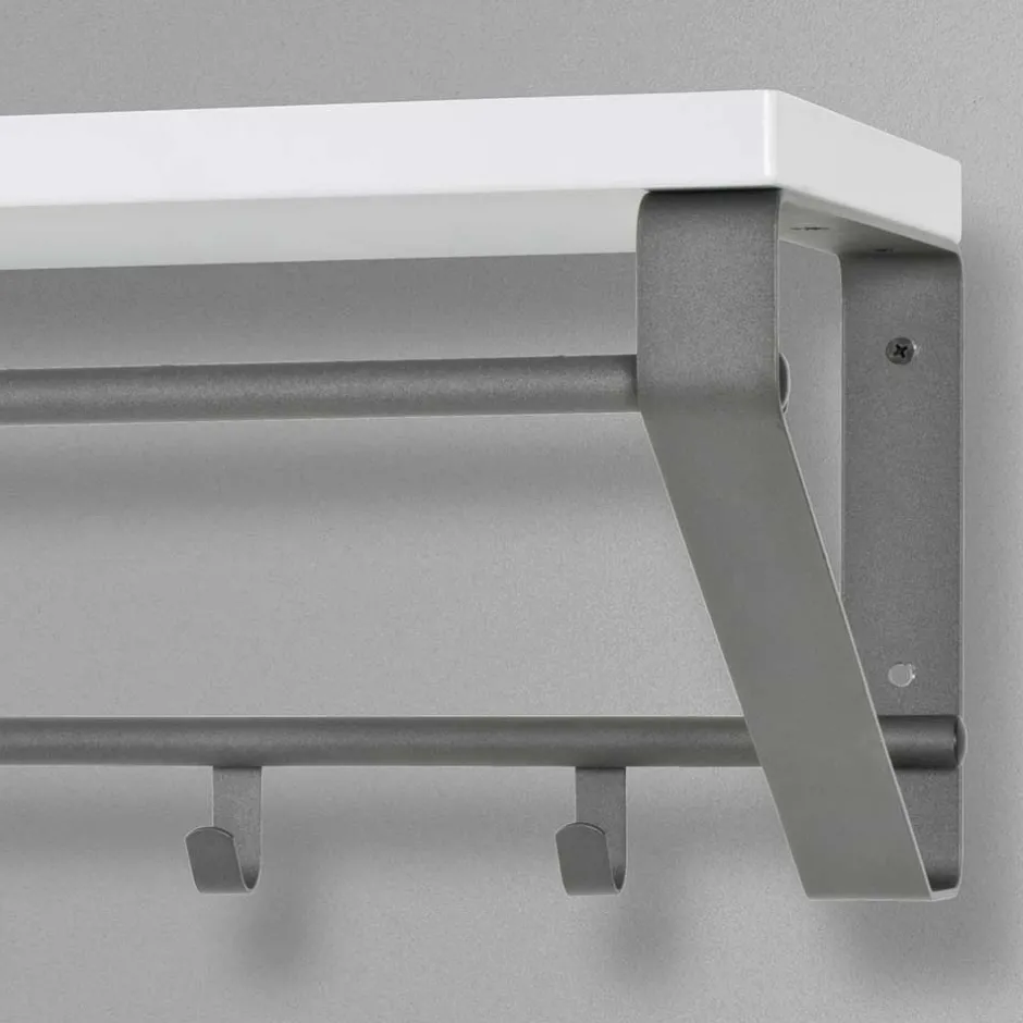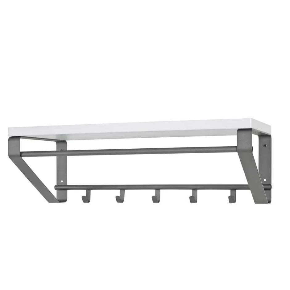 - Mit fünf Haken und einer Kleiderstange aus Stahl