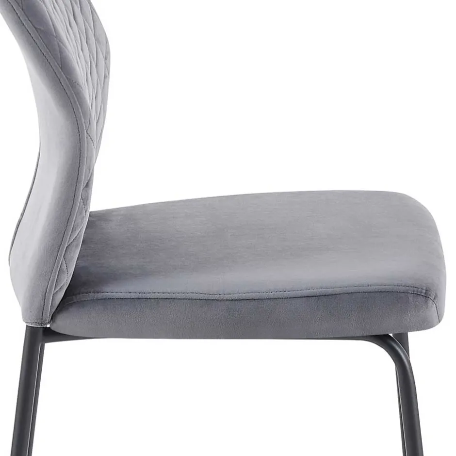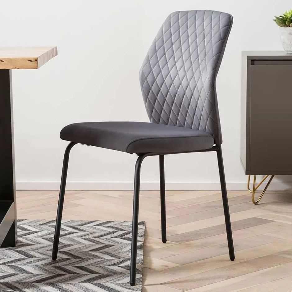 Die Rückenlehne des Stuhls ist nicht nur ein optisches Highlight, sondern auch ergonomisch durchdacht. Eine leichte Wölbung im unteren Bereich unterstützt die natürliche Haltung der Wirbelsäule und trägt so zu einem entspannten Sitzgefühl bei. Die schicke Rautensteppung verleiht dem Stuhl zudem eine elegante und zeitlose Optik, die sich in jede Einrichtung harmonisch einfügt.