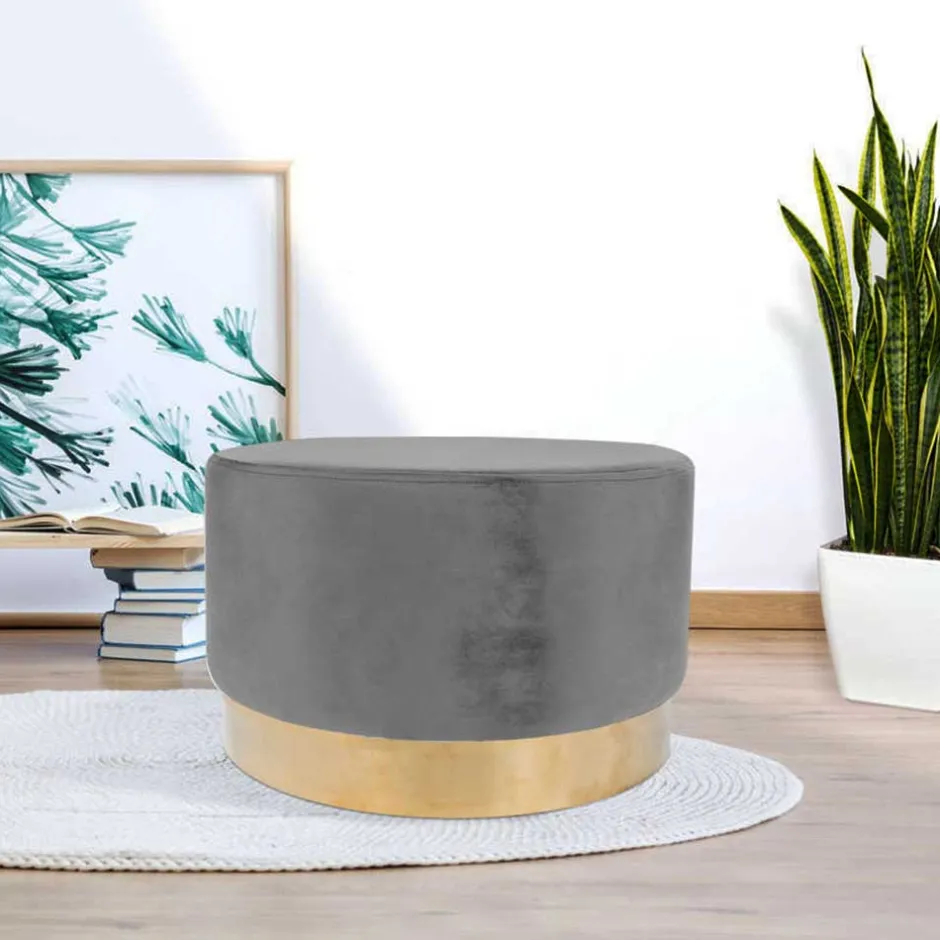- Dezenter Hocker in Grau und Goldfarben