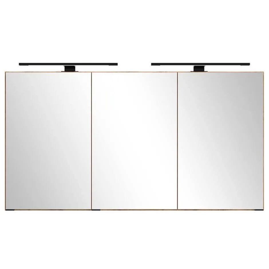 Mit Maßen von 120x68x20 cm (HxBxT) und einer Spiegelfront über drei Türen bietet der Spiegelschrank viel Stauraum und ein großzügiges Spiegelbild. Die beiden schwarzen LED-Aufsatzleuchten lassen sich flexibel vorne oder hinten positionieren – passend zu Ihren Lichtbedürfnissen. Innen befinden sich sechs Glasböden und praktische Schalter-Steckdosenkombinationen links und rechts. Hinweis: Die Leuchte gehört zur Energieeffizienzklasse G. Die Höhe ohne Aufbauleuchten beträgt 64 cm.