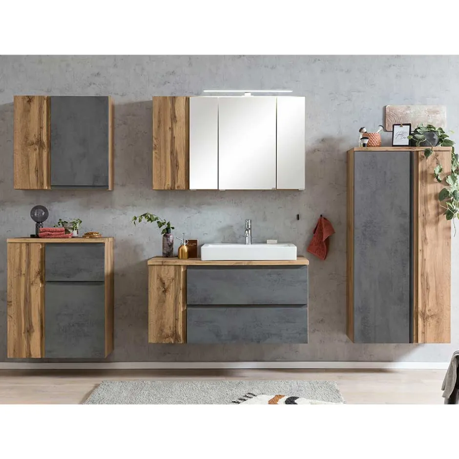 - Schicke Badmöbel in Betongrau und Wildeichefarben