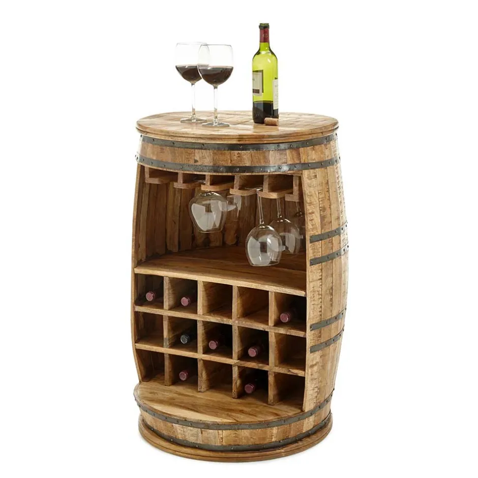 - Rustikales Barfass in Mangoholz Naturfarben und Schwarzbraun