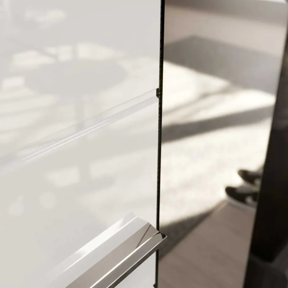 Ob Stauraum, Komfort oder Alltagstauglichkeit – das Set lässt keine Wünsche offen. Die Schubladen sind mit hochwertigen Metall-Vollauszügen ausgestattet, die Türen verfügen über robuste Metallbeschläge, was eine dauerhaft leichte Handhabung garantiert. Griffleisten in Chromoptik und silberfarbene Kunststofffüße unterstreichen das elegante Design. Bei den hohen Möbeln wird aus Sicherheitsgründen die Befestigung an der Wand empfohlen – eine Kippsicherung sorgt hier für zusätzliche Stabilität.