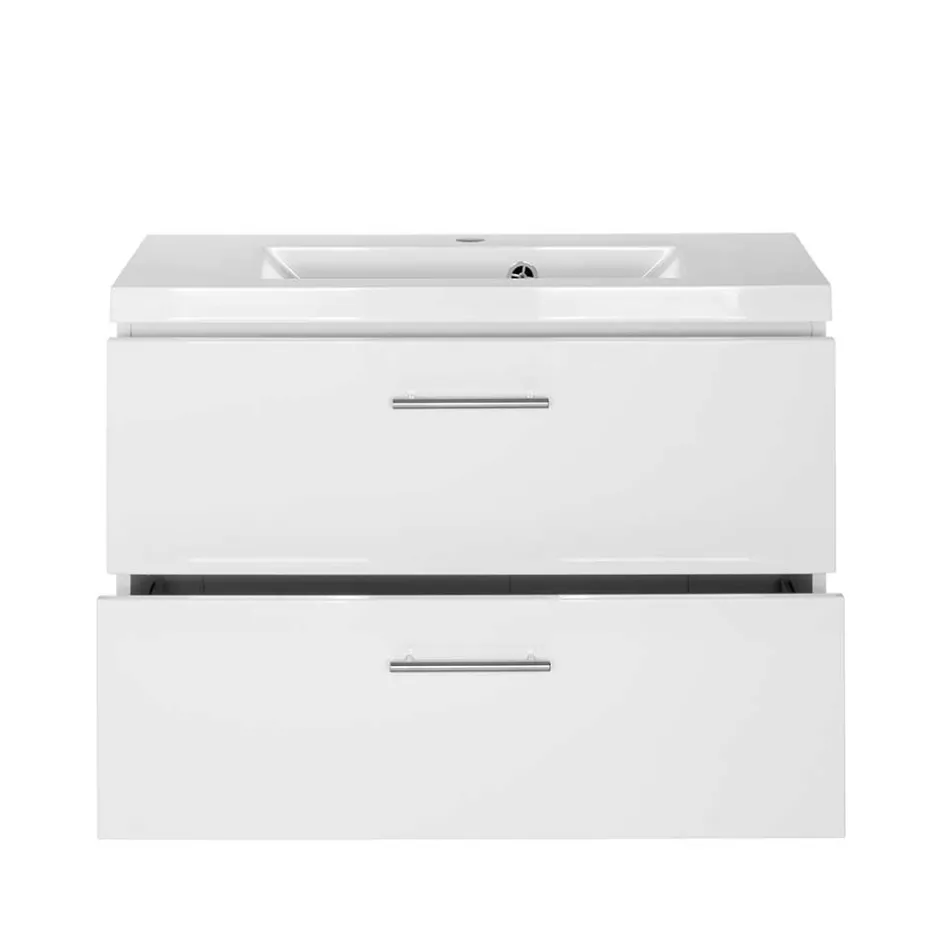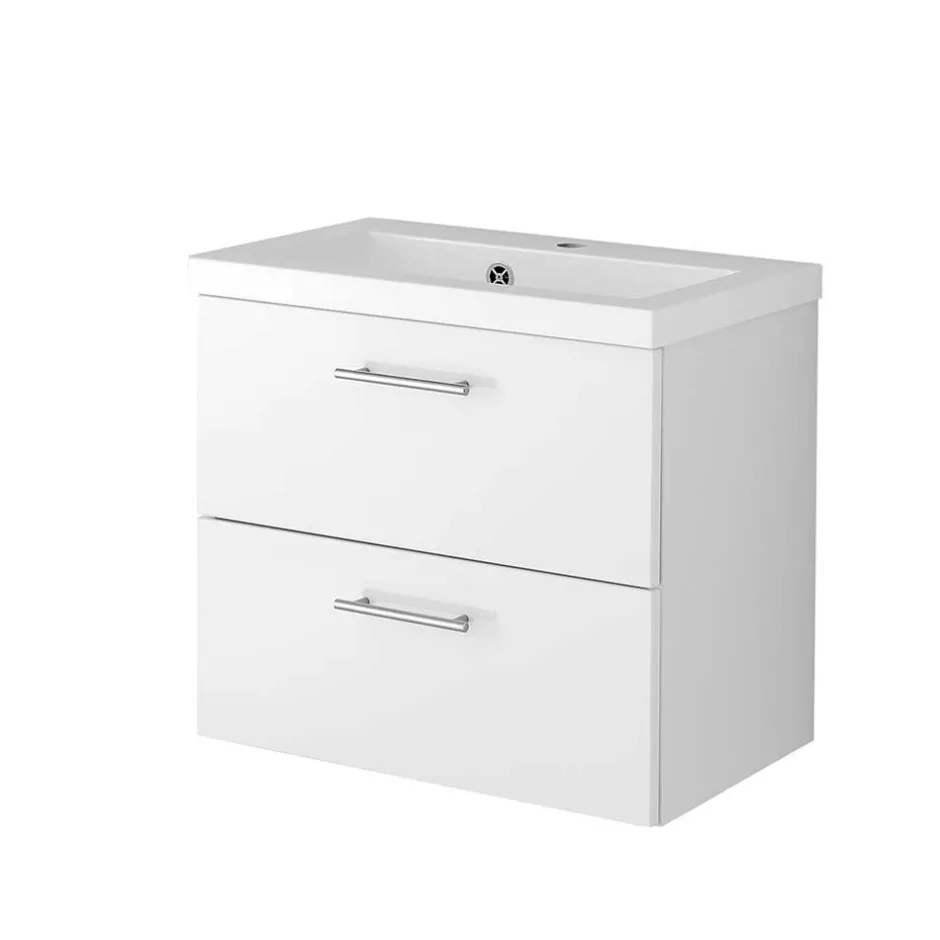 Gefertigt aus widerstandsfähiger Spanplatte (Korpus) und hochwertigem MDF (Front) bringt dieser Waschtisch nicht nur Stabilität, sondern auch Langlebigkeit mit. Die melaminbeschichtete Oberfläche des Korpus ist besonders unempfindlich gegen Feuchtigkeit und Kratzer, während die folierte Hochglanz-Front nicht nur edel aussieht, sondern auch pflegeleicht bleibt.