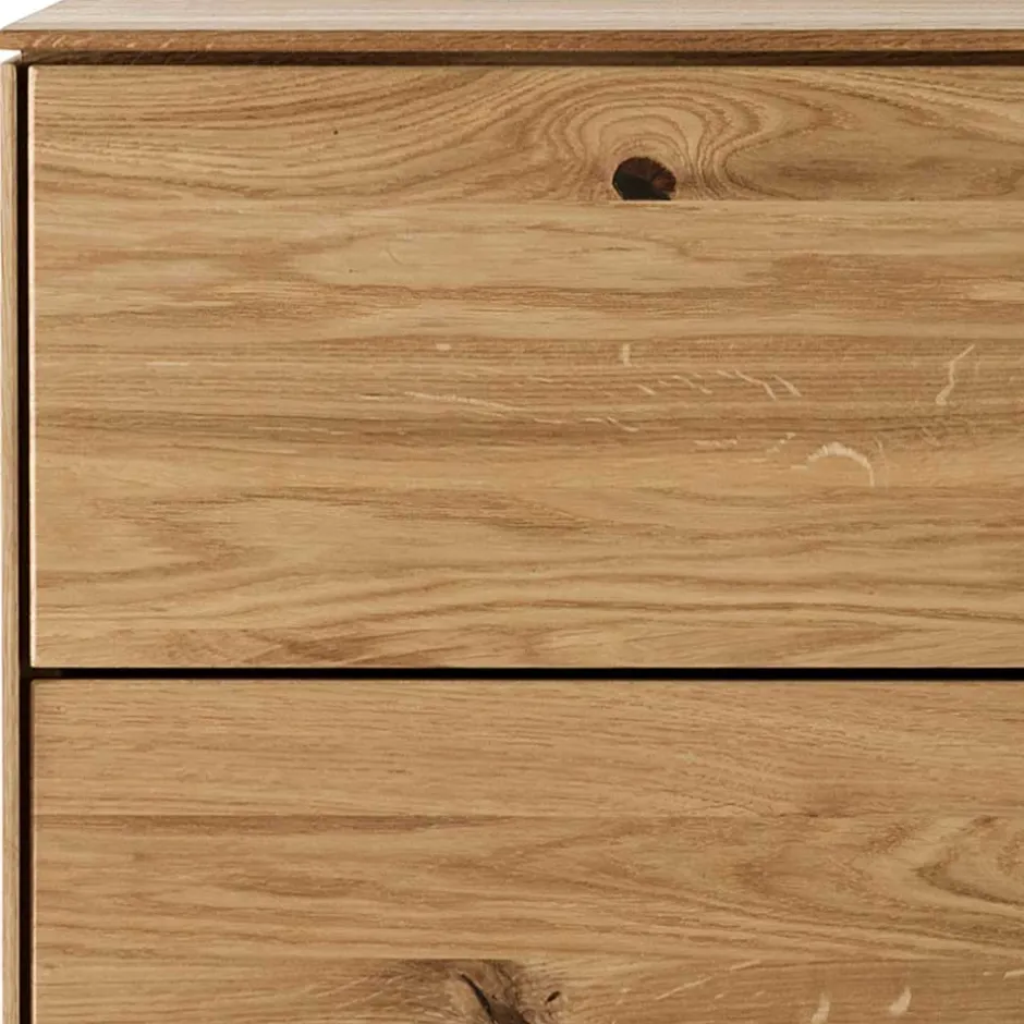 Wildeiche ist nicht nur optisch ansprechend, sondern überzeugt auch durch ihre Robustheit und Langlebigkeit. Die charaktervollen Maserungen, kombiniert mit sichtbaren Astlöchern, machen jede Hochkommode einzigartig und verleihen Ihrem Wohnraum eine lebendige, warme Atmosphäre. Wildeiche ist zudem besonders widerstandsfähig gegenüber den alltäglichen Belastungen – eine Investition, die sich über viele Jahre bezahlt macht.