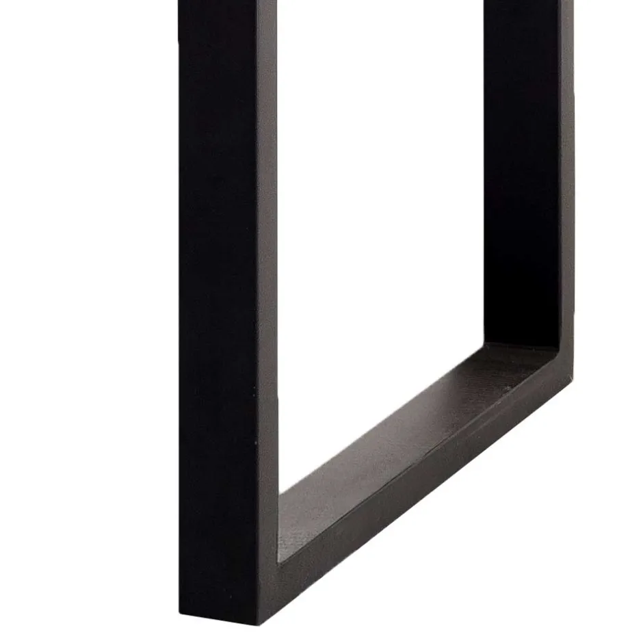 Verarbeitet wurden Vierkantrohre mit den Maßen 60 x 30 mm, die in Bügelform montiert sind. Diese Konstruktion wirkt leicht und offen, bietet gleichzeitig enorme Stabilität und ein hohes Maß an Beinfreiheit. Das Zusammenspiel von Metall und Holz verleiht dem Tisch seinen besonderen Reiz: technisch modern, optisch markant, handwerklich hochwertig.