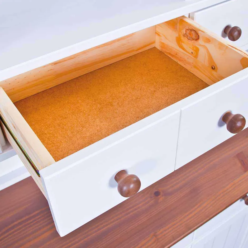 - Insgesamt sechs Schubladen mit Metallauszug, in zwei verschiedenen Größen