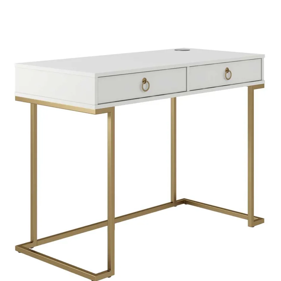 - Eleganter Schreibtisch in Weiß und Messingfarben
