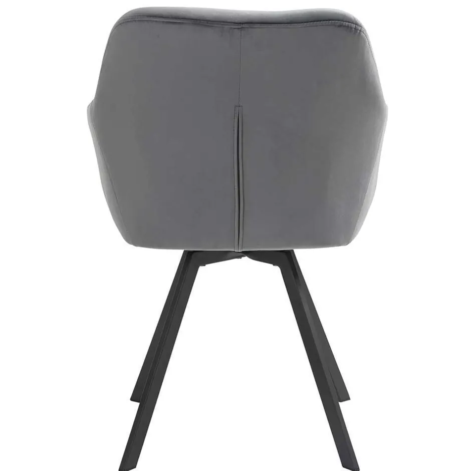 Die Stühle der Essgruppe „Potsdam“ bieten nicht nur optische Raffinesse, sondern auch ein erstklassiges Sitzgefühl. Der weiche Samtbezug in elegantem Grau aus 100 % Polyester fühlt sich angenehm an und überzeugt durch seine pflegeleichte und strapazierfähige Beschaffenheit. Die Schaumstoffpolsterung sorgt für ein bequemes Sitzgefühl, während die breite Rückenlehne mit dekorativer Knopfheftung ein stilvolles Detail darstellt.