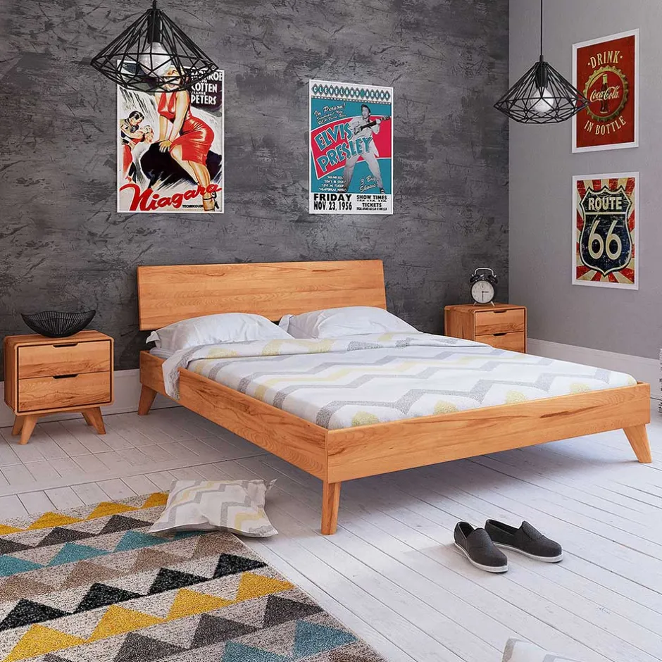 - Modernes Massivholzbett in Kernbuchefarben mit Nachtkommoden