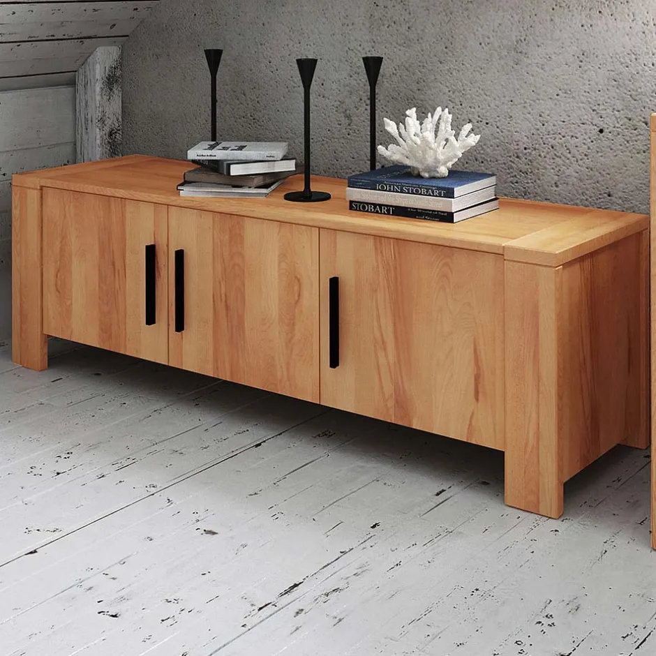 Das Lowboard „Mosniak“ wurde aus massivem Kernbucheholz mit durchgehenden Lamellen gefertigt und besticht durch seine erstklassige Qualität und Verarbeitung. Jedes Detail wurde sorgfältig ausgearbeitet, um ein Möbelstück zu schaffen, das nicht nur funktional, sondern auch ästhetisch ansprechend ist. Die Holzoberfläche wurde liebevoll geölt, um die individuelle Holzmaserung hervorzuheben und einen natürlichen Glanz zu verleihen.