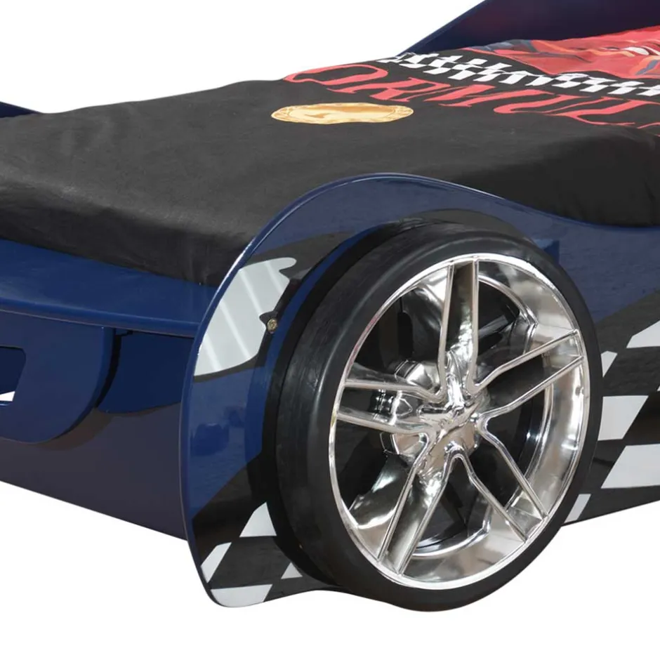 - Breit ausgestellte Räder (feststehend), mittig mit Alufelgen-Nachbildung glänzend als tolles Detail